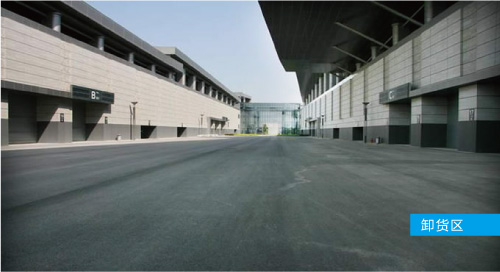 A厅和B厅之间,C厅和D厅之间,E厅和F厅之间的卸货通道长为100m,宽为33m。