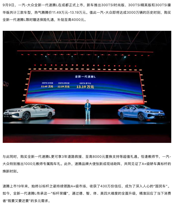 【展商资讯】11.49万起!一汽-大众全新一代速腾L正式上市